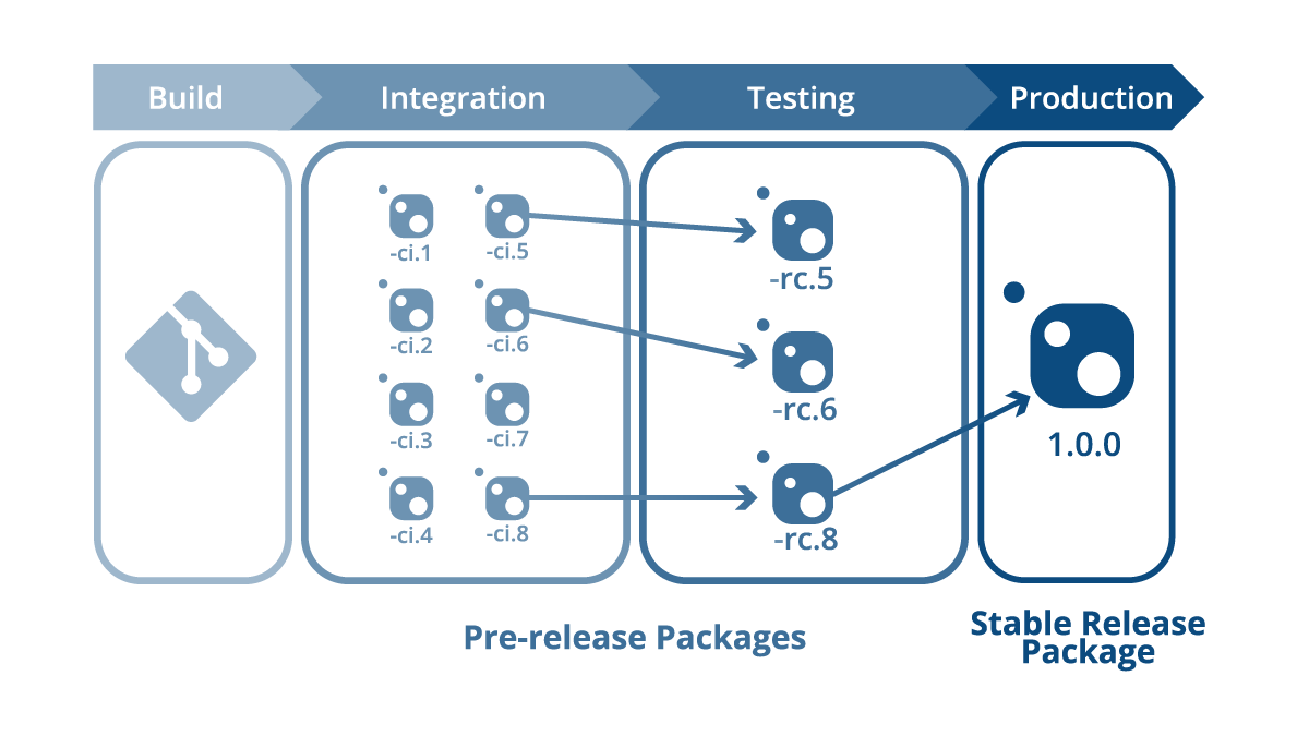 CI/CD 파이프라인 단계를 통해 사전 릴리스 패키지를 프로덕션으로 Push하면서 불변성, SemVer, 리패키징 및 릴리스 안정성과 같은 모범 사례를 유지하세요.