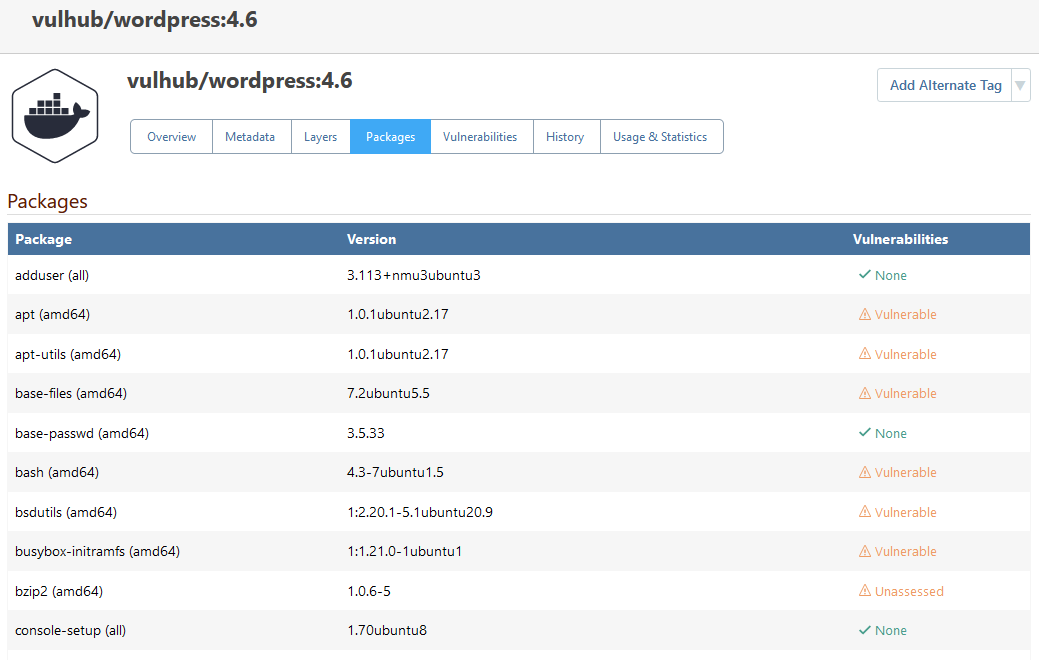 비공개 Docker 레지스트리를 만들고, 컨테이너 내에서 취약한 패키지를 검색하고, Docker 사용량을 표시하고, 시맨틱 버전 관리와 혼동을 없애고, 승인된 이미지만 프로덕션에 적용되도록 합니다.