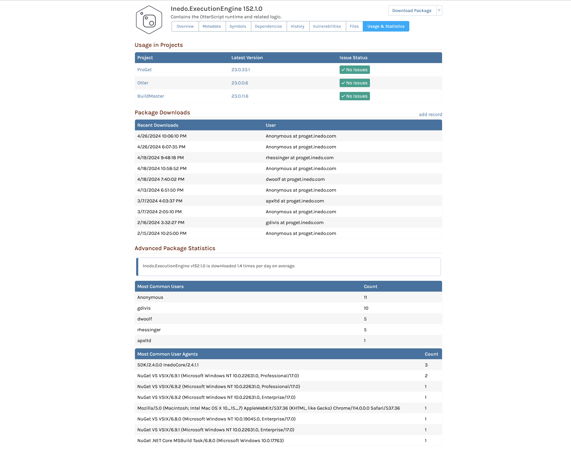 각 피드별 통계 또는 글로벌 사용량과 같은 세분화된 옵션을 통해 누가 어떤 패키지를 다운로드했는지, 어디에서 사용 중인지, 사용 빈도를 파악할 수 있습니다.