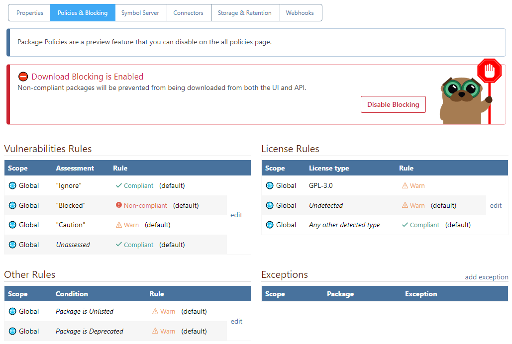조직 전체에 대한 패키지를 관리하는 정책을 활성화하고 특정 프로젝트에 대한 세부적인 패키지 준수 정책을 설정할 수 있습니다.